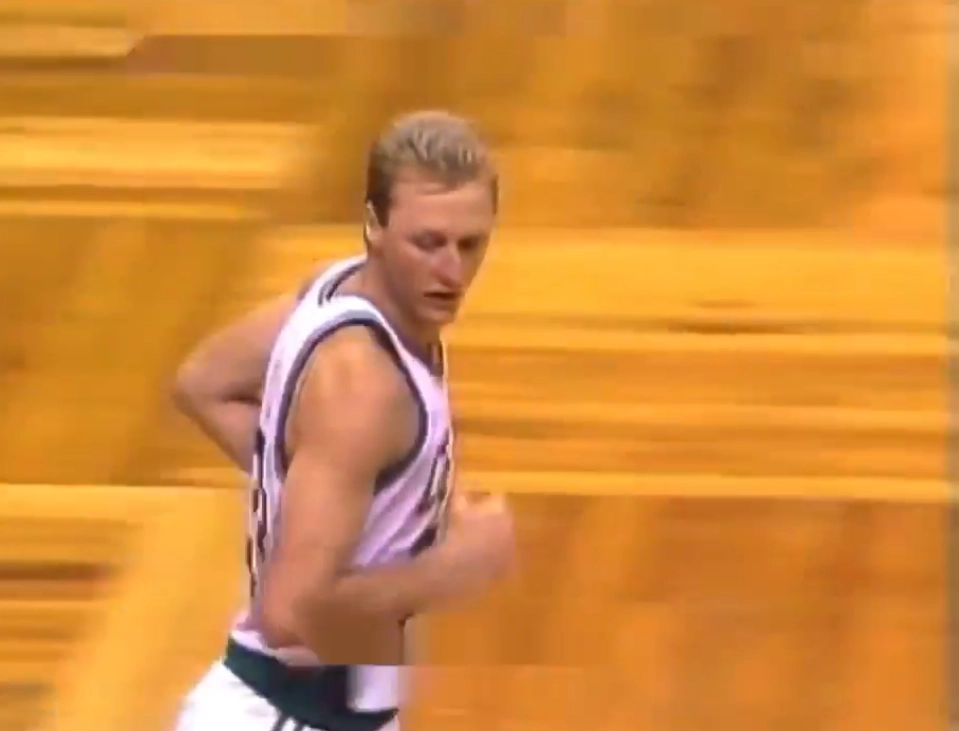 Miller, chastened, walked to the other side of the lane, only to find no quarter there either. Kevin McHale, Bird's lieutenant in domination, leaned in with a smirk. "Yeah, that was kind of stupid of you to do something like that, right?" [01:08].